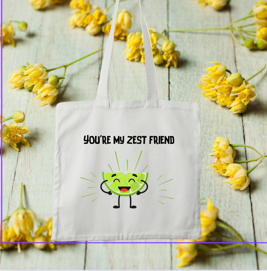 Bring a burst of citrus-y joy to your shopping trips with the "You're My Zest Friend" Market Tote Bag!